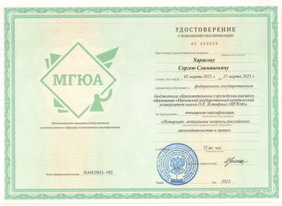 Регистрационный номер нотариуса в реестре нотариусов и лиц, сдавших квалификационный экзамен: 22/349-н/22